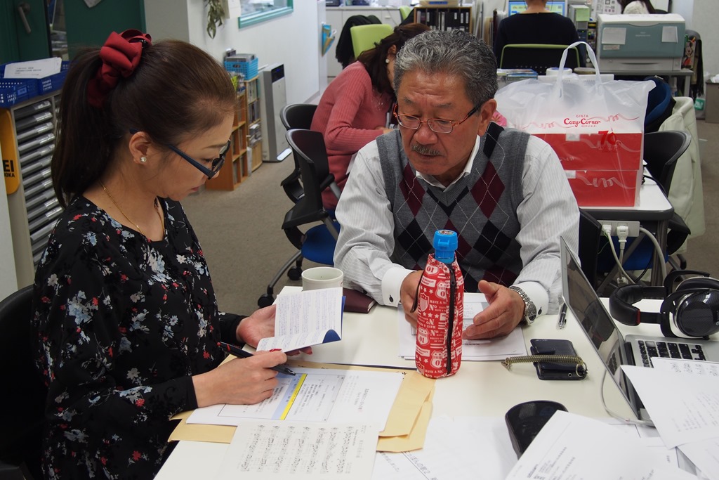 本番前の打ち合わせです。手前から、私・村松社長・遠藤D・カコマルさん。真剣(?)そのもの